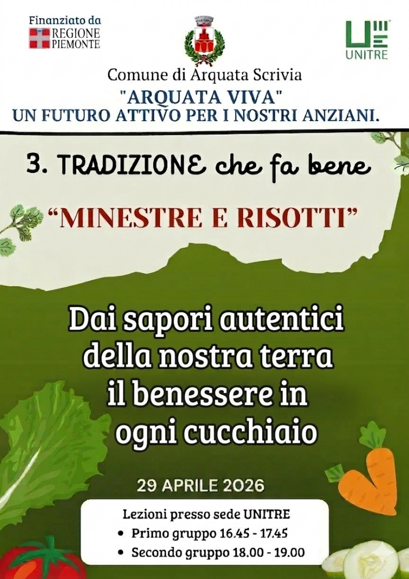 Questo corso nasce dalla sinergia tra Unitre Arquata-Grondona, l’Amministrazione Comunale di Arquata Scrivia e gli esperti della ASL e rappresenta una delle iniziative del progetto "ARQUATA VIVA", con cui il Comune di Arquata Scrivia si è aggiudicato il finanziamento della Regione Piemonte. Focalizzato sulle attività fisiche, sociali, cognitive e a tutela della salute, il progetto risponde pienamente ai requisiti regionali per la promozione dell'invecchiamento attivo.